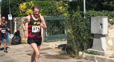 Fortunately, the course itself did have some reasonable climbing, about 1,800 ft in all, with the biggest effort being the 150 metre cliff wall natural steps that had to be traversed over the 2.5 x 4.3km laps. The rest of the course was a mix of tarmac and single track rocky trail, varying between an urban setting in the centre of Gagliano where the finish was, and the surrounding olive groves and coastal paths. Certainly different to what we’re used to here. Regardless, it was the same for everyone and made for some fast, competitive racing, despite the sweltering 27°C+ heat.