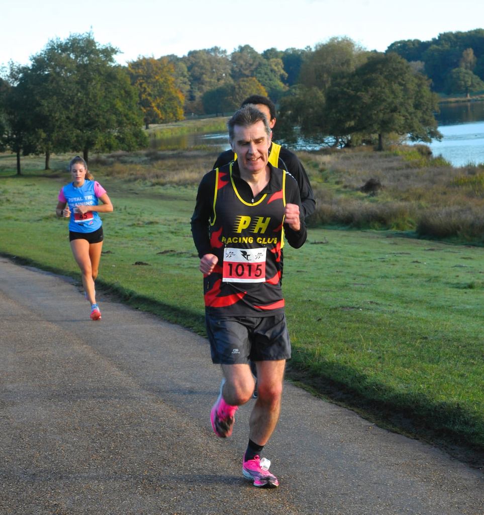 Heat 2 saw Allen Marr and Alan Cockburn repeat their tussle from the recent Monument Mile, though times were down on the Stirling event with conditions not conducive to fast times. Track specialist Marr once again came out on top in a time of 5:38.6 to Cockburn’s 5:42.1. Mark Western was running his second race in a matter of days having posted a solid 39:25 in Cheshire over the weekend at the Tatton 10k, where he made his second debut in a PH vest (pictured). Over the mile he finished in 5:53.9 with Mary Western setting a new V50 record in 6:14.3. Ed Norton was the sole PH competitor in Heat 3 where he finished third in 5:56.3 to rank him 4th in the UK this year, and 24th all time in the V65 category.