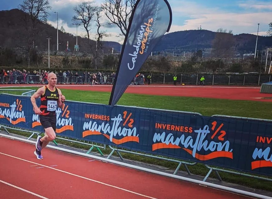 There have been a number of other races over the last few weeks. On Sunday 13th March a number of PH athletes made their way up to Inverness for the half marathon. Paul Kieran was first home there too with a time of 75:30 that was close to his best. Birthday boy Craig Paterson celebrated in style, running a new best time of 79 minutes exactly, while Mark McLean and Michael Lindsay were separated by only 6 seconds, timing at 86:23 and 86:29 respectively. Mark Western finished in 87:57, just ahead of Marc Preece who, as already mentioned, set a very short-lived half marathon best.