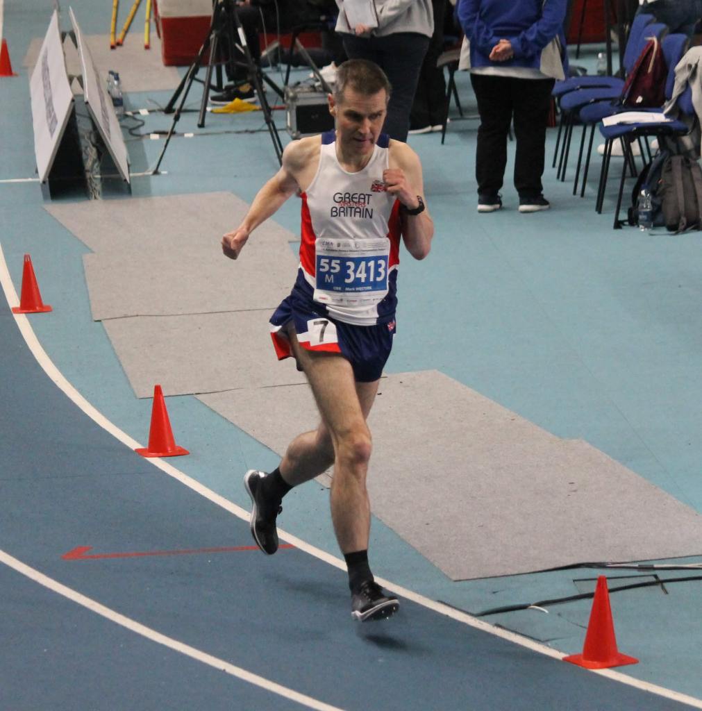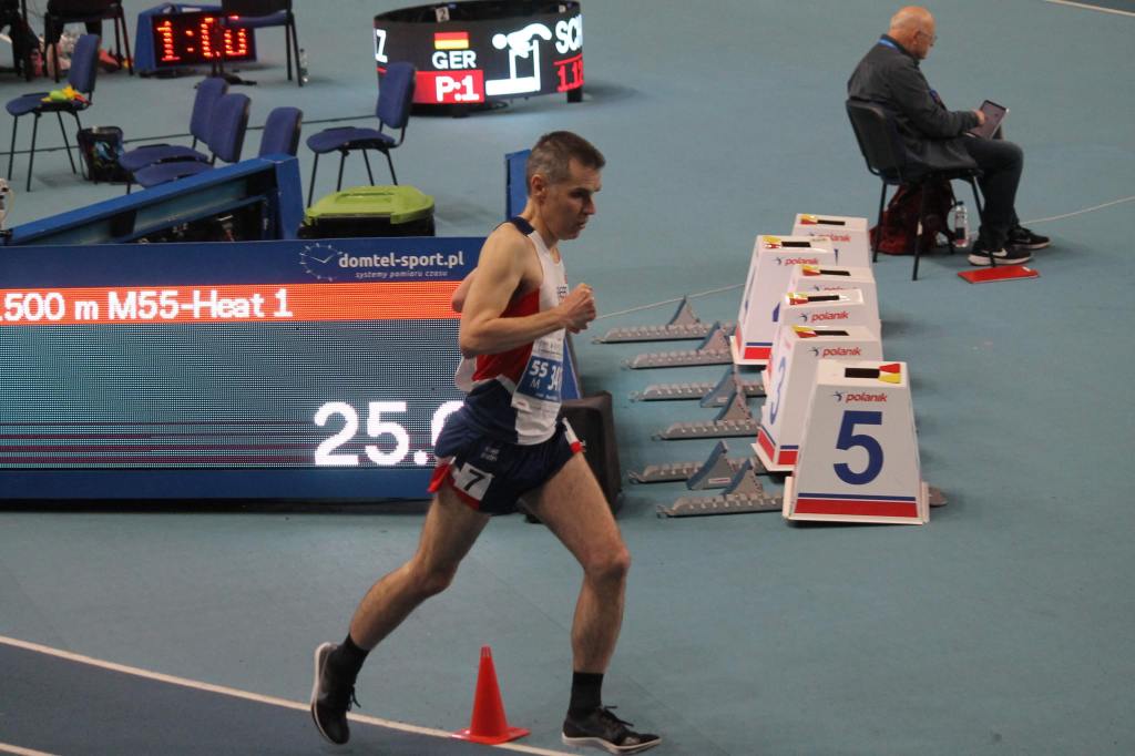 Mark’s week had started back on Sunday with the 3000m, where he competed in the M55 category. This event was run across two heats but with no final. Mark found himself in the slower first heat and finished in a good time of 11:25.42 to finish in 20th place overall, all the medalists having come from the second heat.