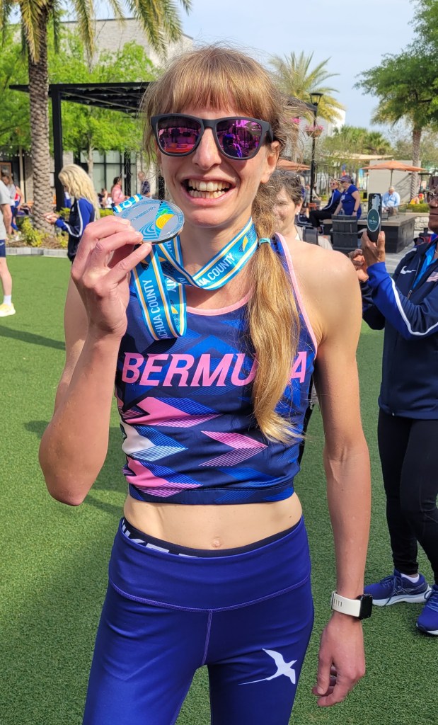 Finally, at the end of the month, Gayle Lindsay represented Bermuda at the World Masters 10k Championships which were incorporated into the World Masters Indoor Championships taking place in Gainesville, Florida. Gayle’s time of 36:34 secured her a V35 silver medal as well as a nomination for Run of the Month! Kat Lindsay was also there, representing the British Virgin Islands, and finished 5th V35 in 39:28.