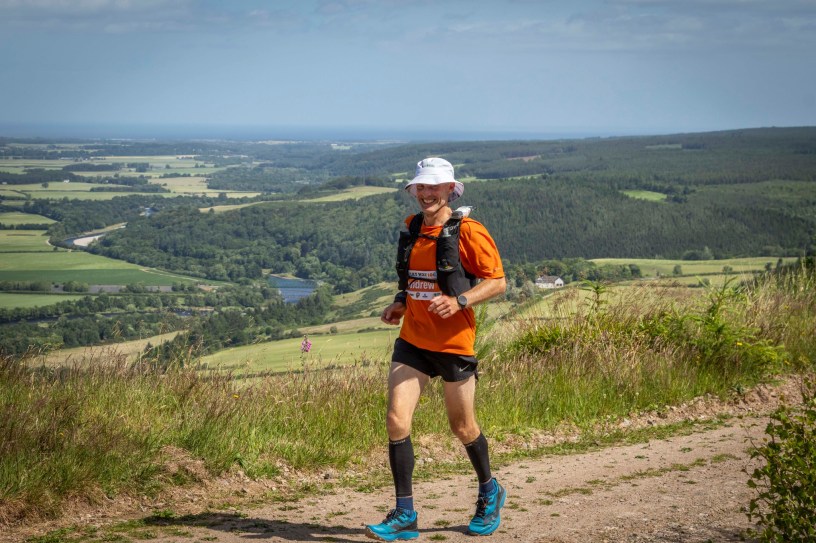 “I took the race on from the start, enjoying a ferocious tailwind to Spey Bay, then battled hard up the Speyside Way against the headwind. Turning down the Dava Way, there was no tailwind but a tricky cross wind, and I ran through some wildfire smoke. I got to Dava and started to run through increasingly dense smoke, passing a cottage where people were hastily packing pets and an old lady into cars. There was more thick smoke, heat and ash then suddenly a small break in the smoke where the trees either side of the Dava Way were on fire! I got safely to the road which the police and fire brigade were closing as the fire had only just taken hold.