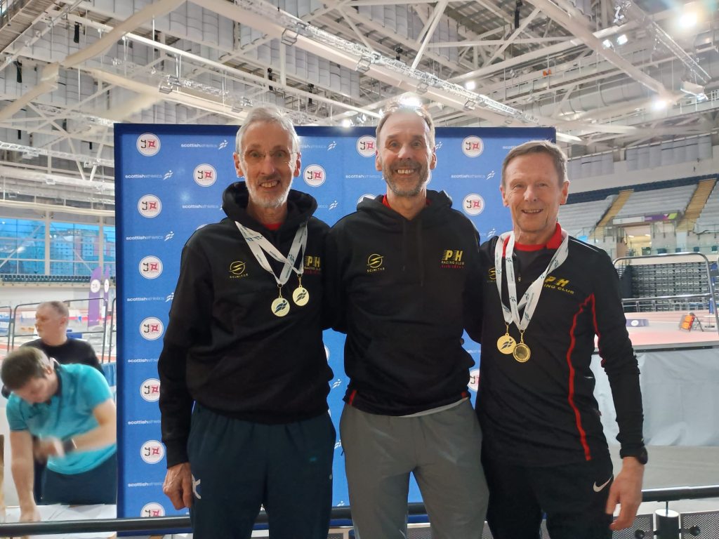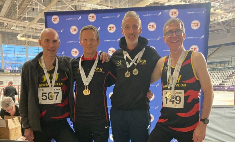 Four PH athletes were at the Emirates Arena in Glasgow in Sunday to take part in the Scottish Athletics Indoor Masters Championships. We had representation in every track event from 60m up to 1500m with everyone taking home a medal from each event entered, including a grand total of six gold medals.