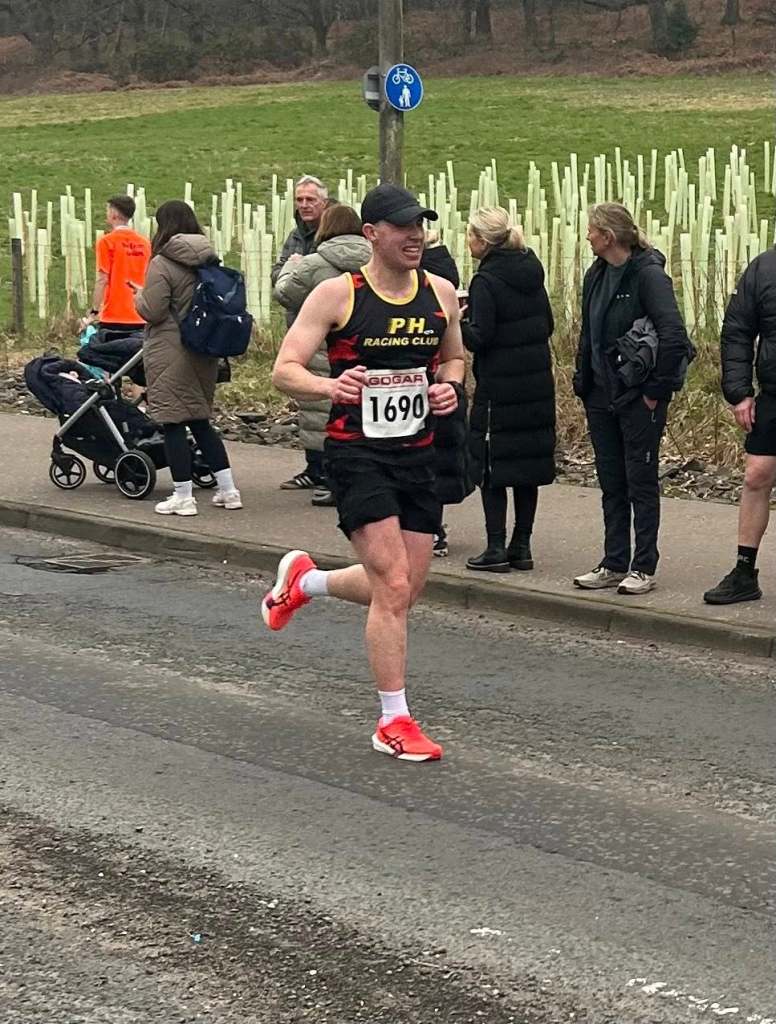 Luke McNeil continued his takeover of men’s PH Racing Club records with a superb run at the Alloa Half Marathon on Sunday, finishing as runner up in 1:11:03. This took almost a minute off the previous record, held by Ben Hukins since the inaugural Kirkcaldy Parks Half back in 2019, though he still remains the club’s over 40 record holder.